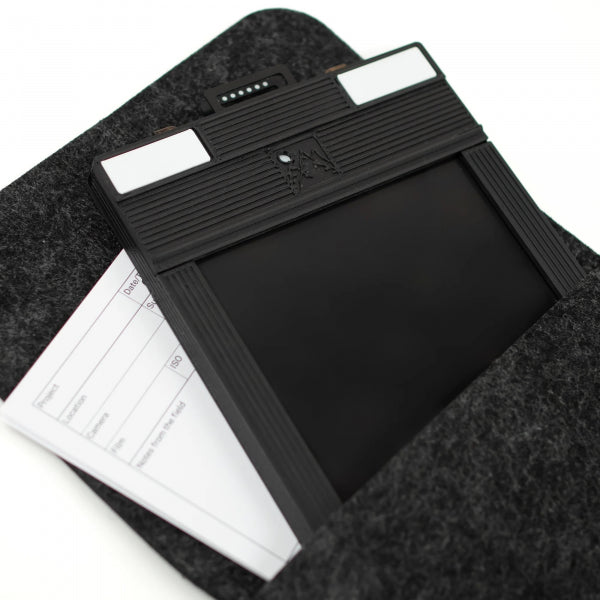 The Intrepid film holders have some added extra features including the word “exposed” on one side of each dark slide to remind which side is exposed and which is not. Each film holder also comes with a soft case and a handy set of field notes for recording exposure details.