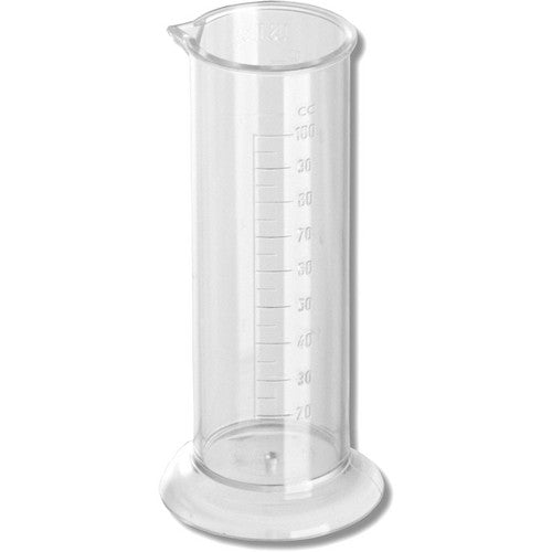 Ideal for accurately measuring chemistry, this 3.75 oz / 100mL Graduated Cylinder from Samigon is constructed from impact-resistant clear plastic, can withstand temperatures up to 212°F, and features a convenient pouring lip as well as an oversized base for stability. This graduate offers measurements in both ounces and cubic centimeters (mL) with markings up to 3.75 oz and 100mL, respectively.