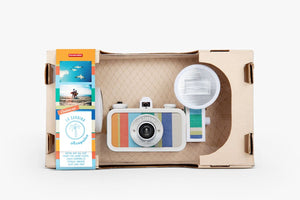 - Dressed in a unique playful striped fabric, no two cameras are the same