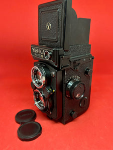 Though several years out of production the Yashica Mat-124G is still one of the most widely used TLRs around. The reasons for its popularity are simple: quality, affordability and ease of use. A favorite of photographers getting started in medium format, it's dependability and features such as 120/220 capability, bright fresnel screen, built-in 3x magnifier and sports-finder frame also make it a mainstay in many a pro's working lineup. Features include: 80mm f3.5 Yashinon taking lens Built-in match-needle meter Flash sync at all speeds from 1-1/500 second crank-handle film advance with automatic stop and shutter cocking.